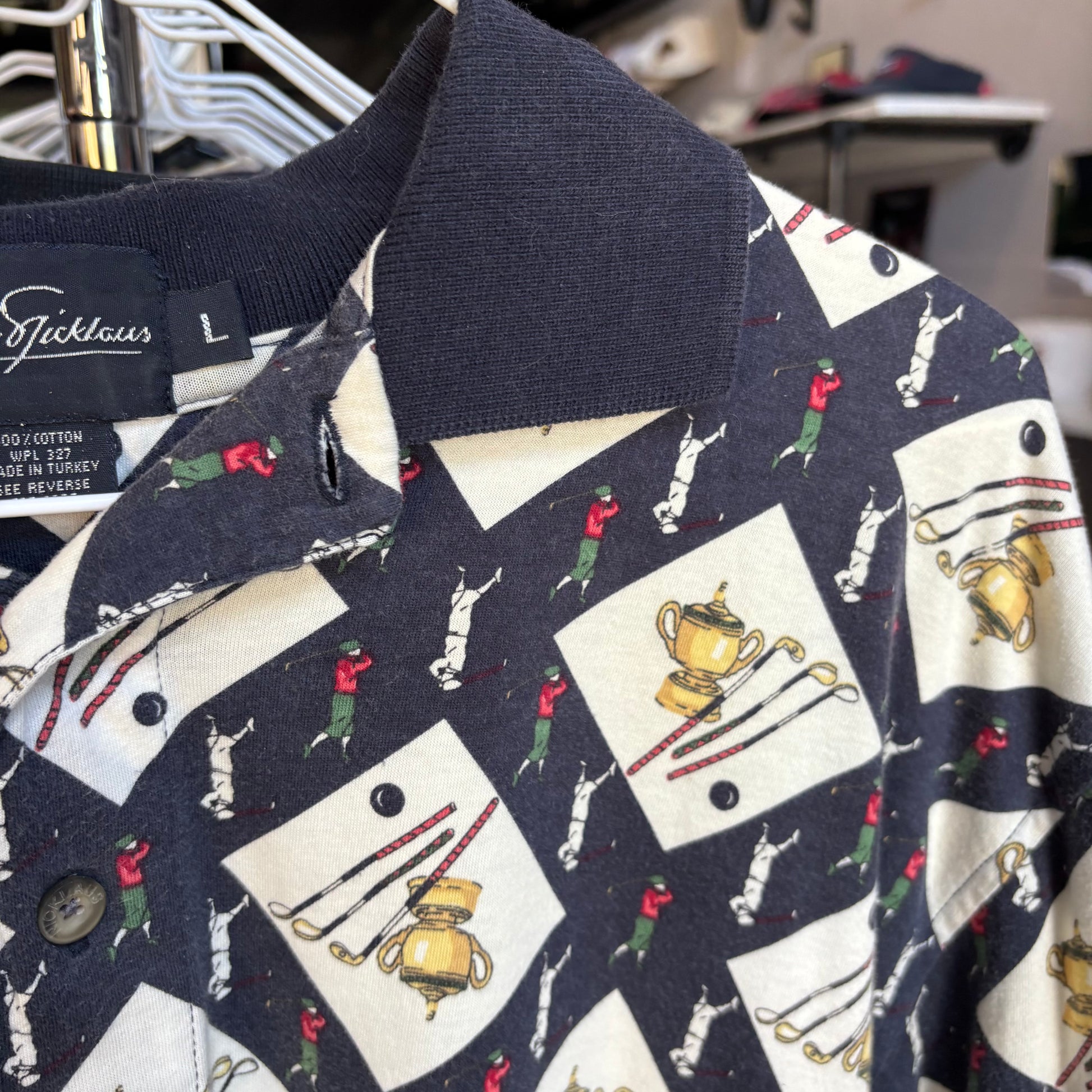 Vintage all over print golf polo large